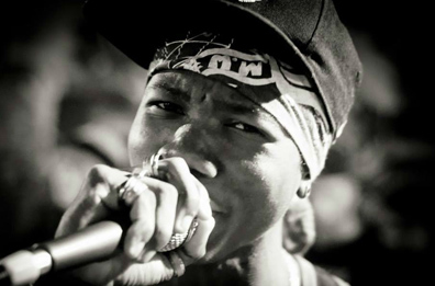 Fotografia: Rapper na roda cultural do Méier, que acontece toda quarta-feira com rodas de rima, batalhas de MCs, poesia, música, etc. (Crédito: Erick Araújo)